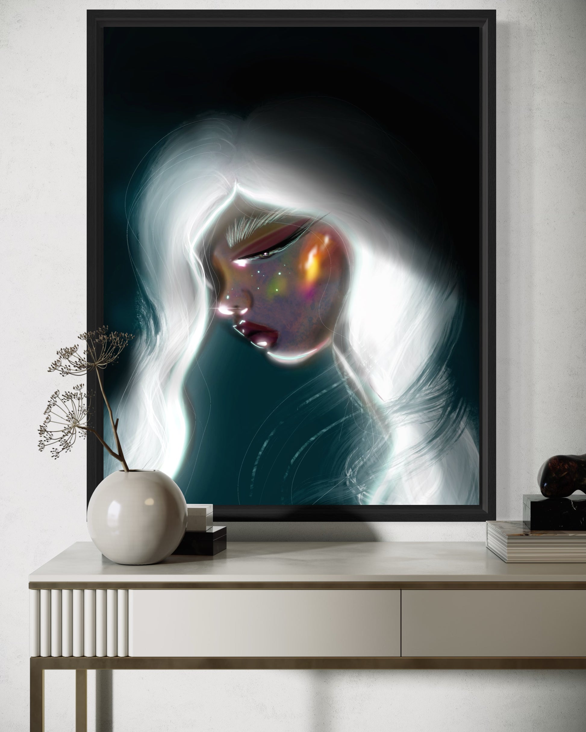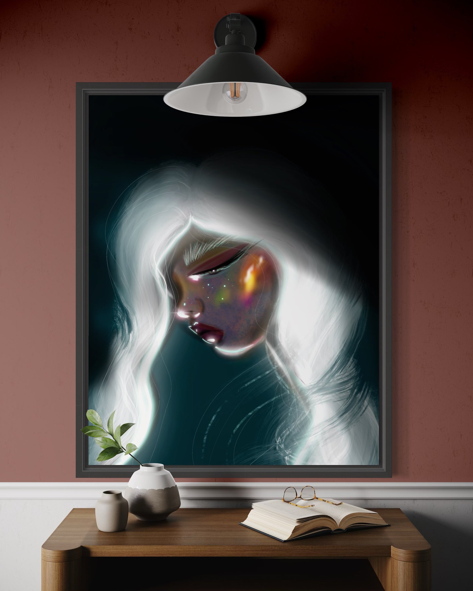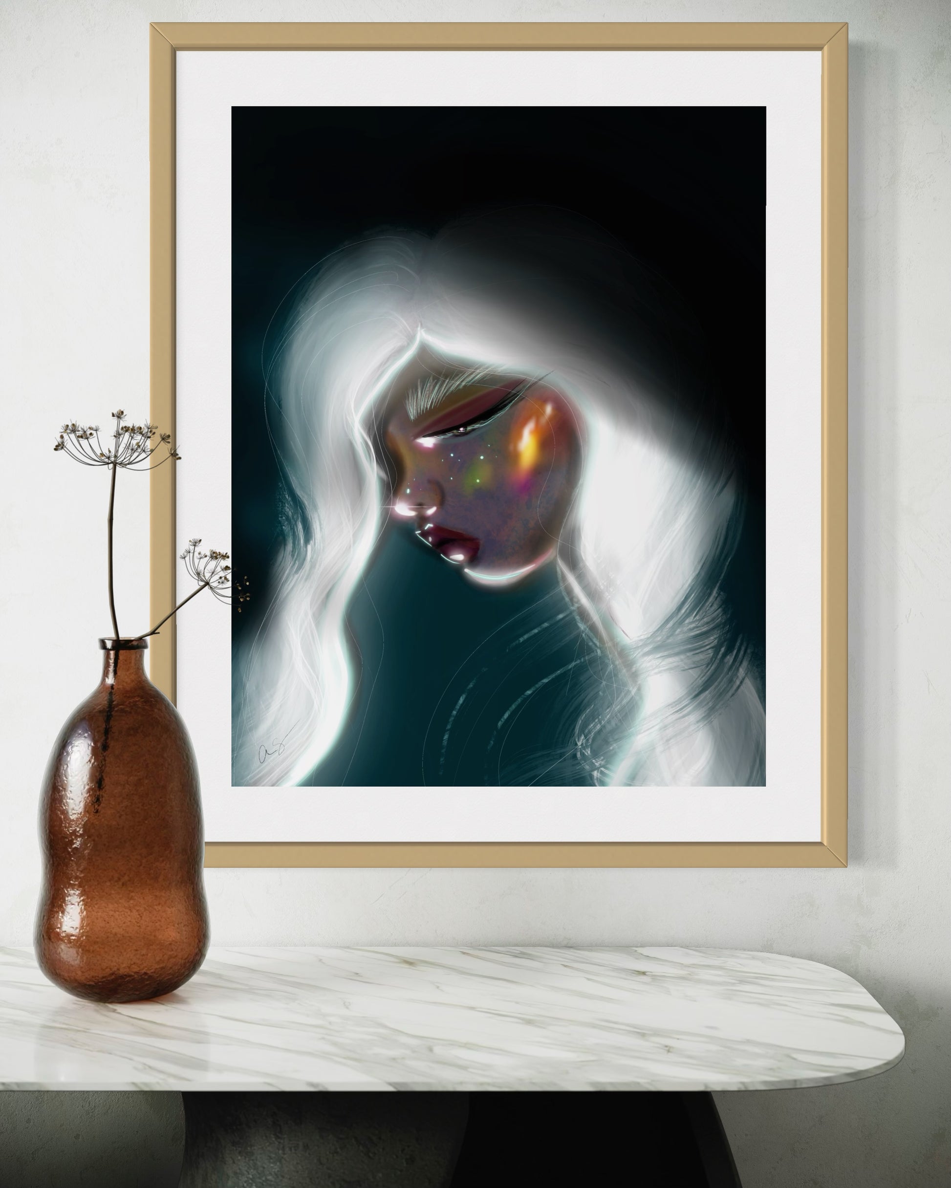This is a fine art print of an original hand drawn digital illustration. All prints are giclee printed on Somerset Velvet paper using Epson UltraChrome inks. 100% cotton, acid-free, and archival.