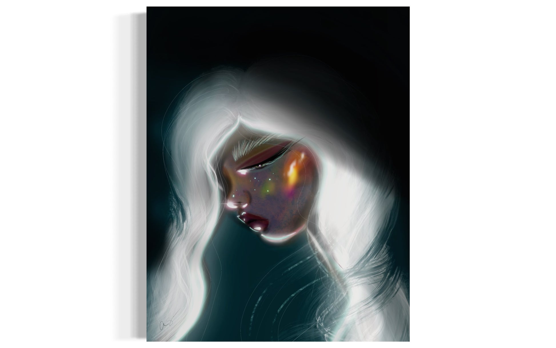 "Andromeda." She’s ethereal and glowing looking down from a dark, endless galaxy.