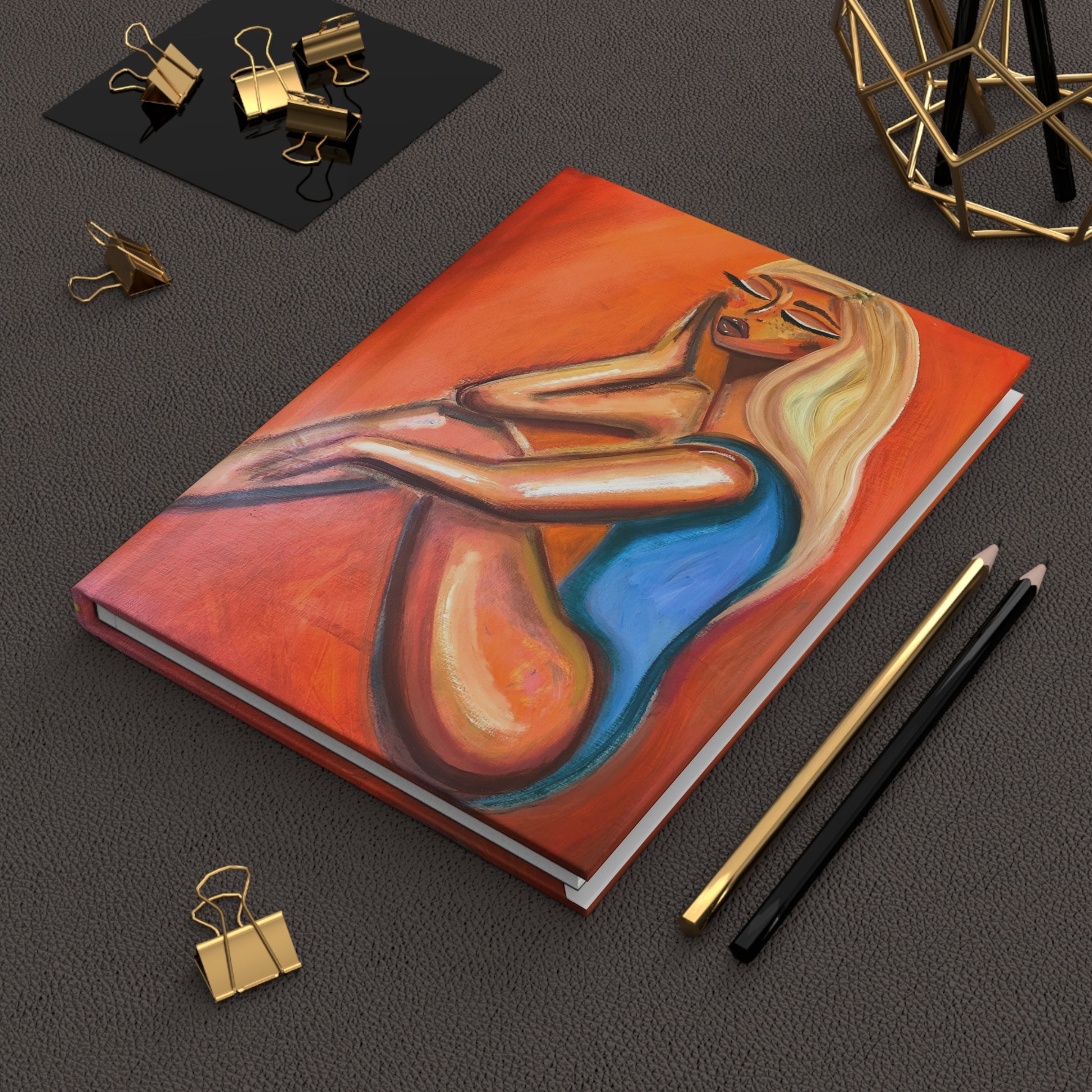These luxe, matte, hardcover notebooks are 6"x8" with 150 lined pages. Printed with my original "Merde" artwork on both the front and back. Bright orange background with a sitting woman in a blue leotard. Ballet inspired, this colorful notebook is the perfect gift for a dancer, writer, or dreamer!