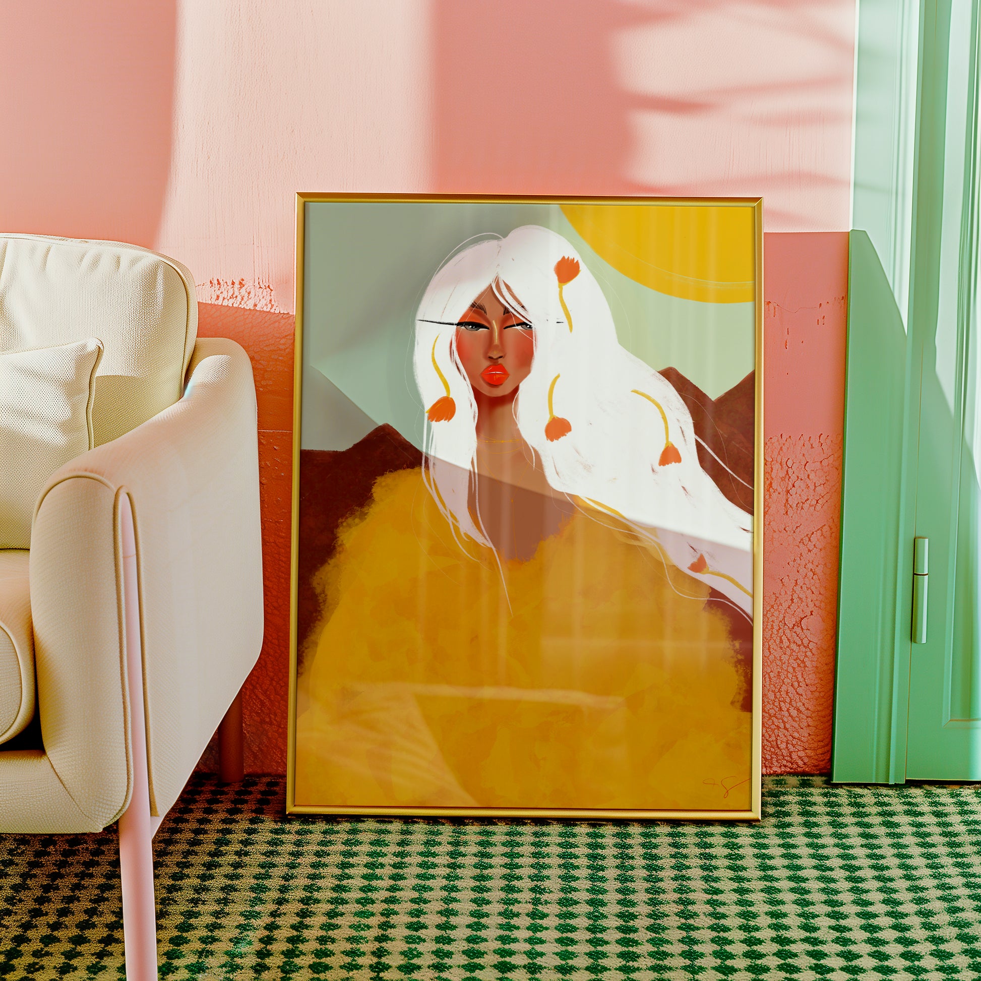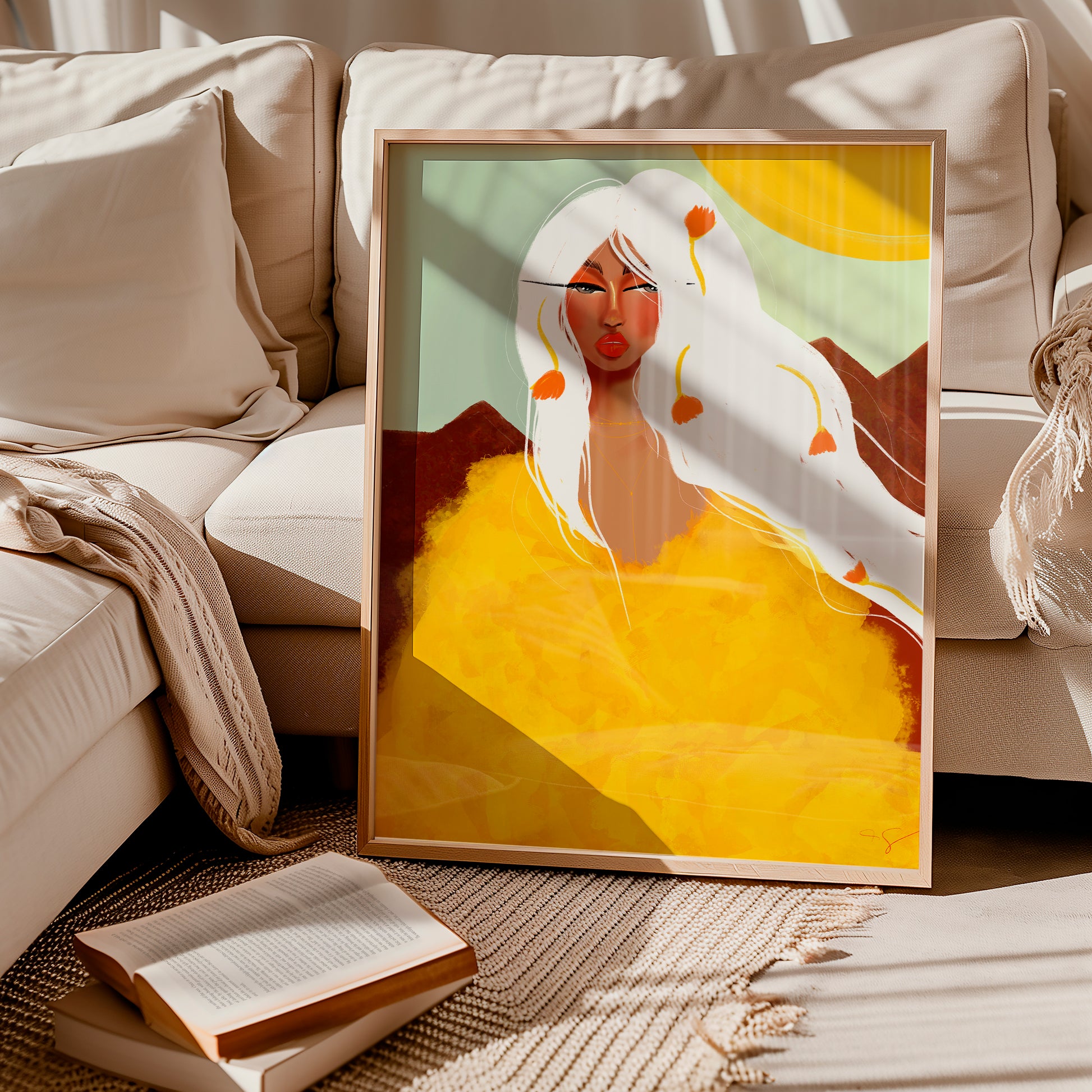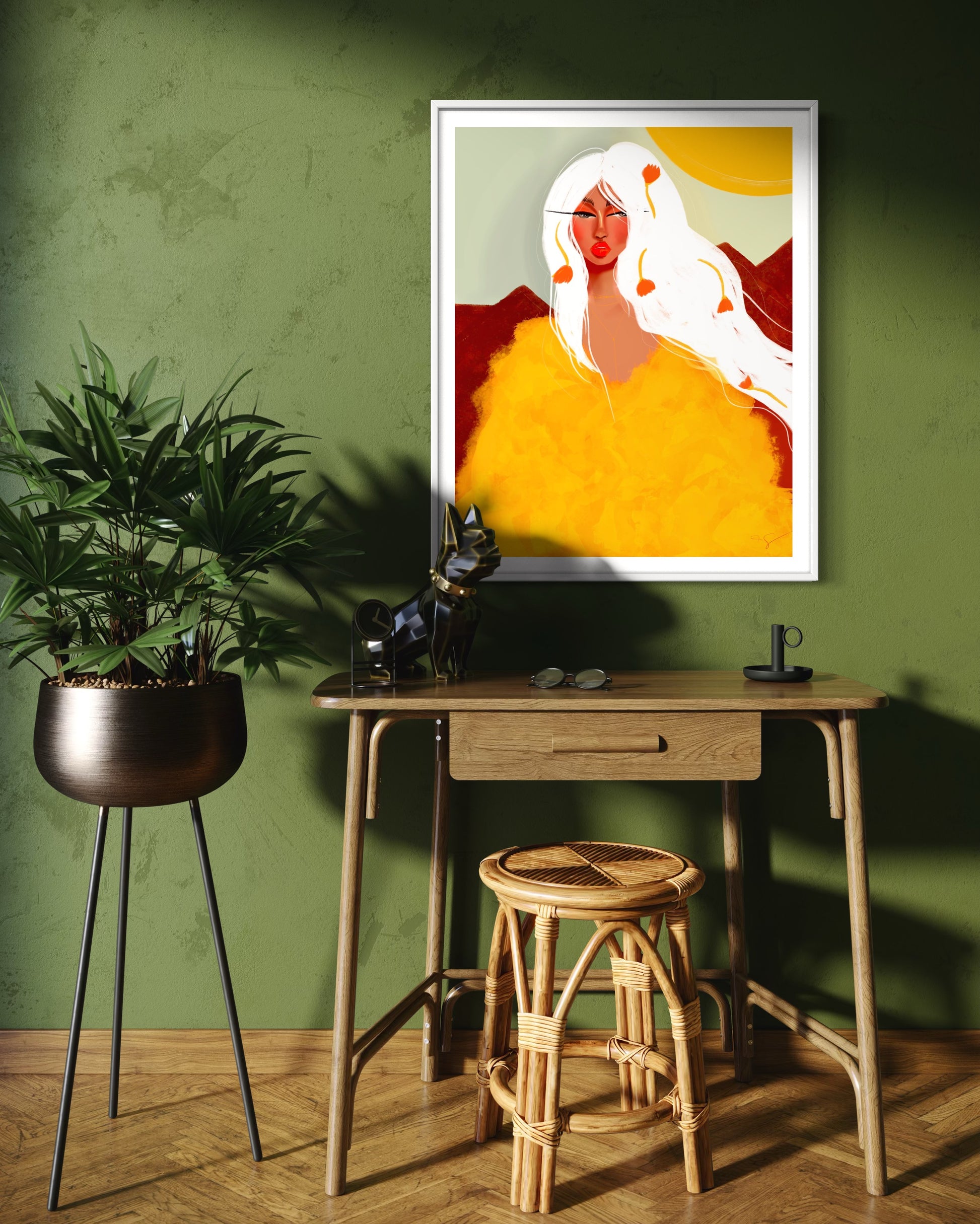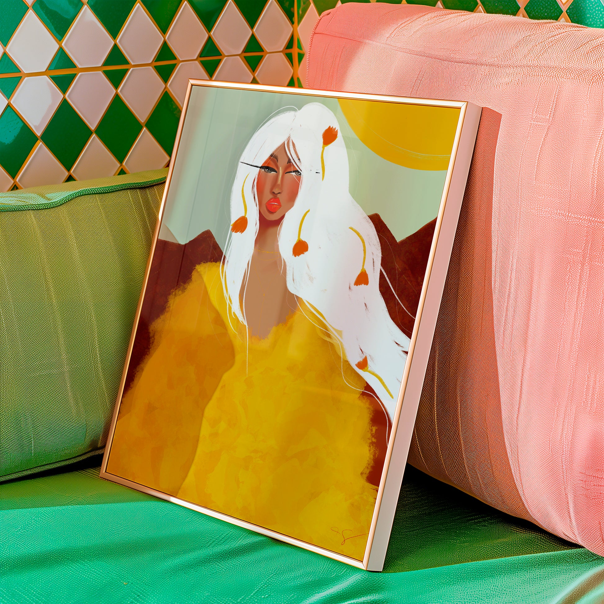 This is a fine art print of an original hand drawn digital illustration. All prints are giclee printed on Somerset Velvet paper using Epson UltraChrome inks. 100% cotton, acid-free, and archival.