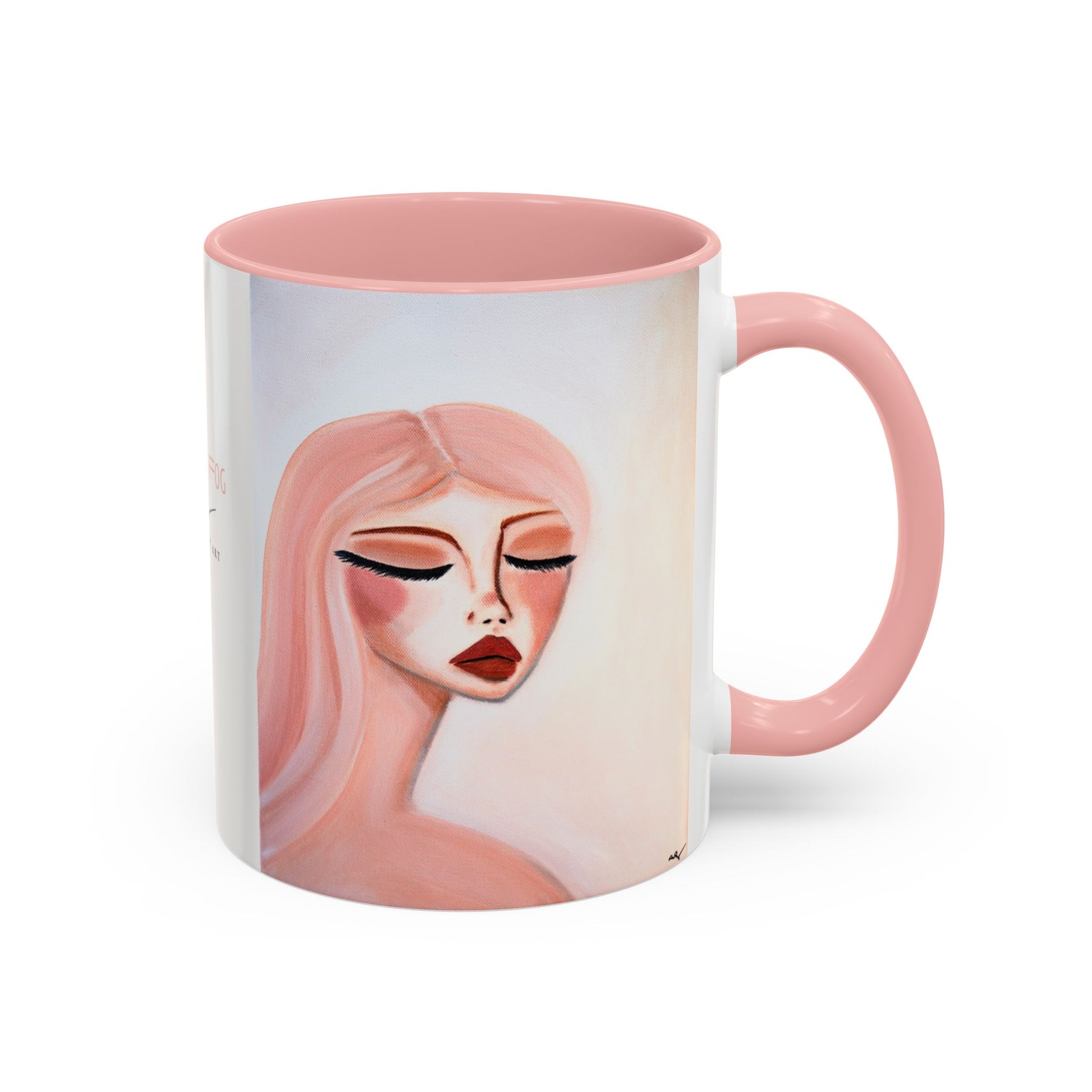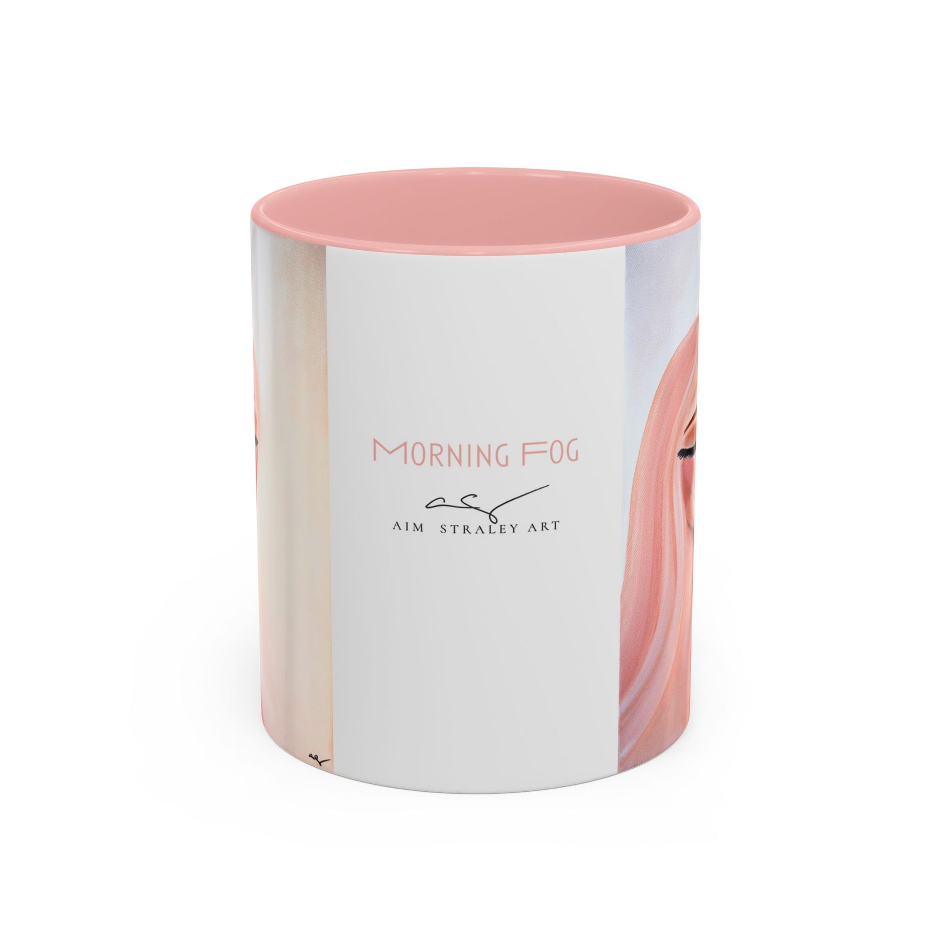 This mug is printed on both sides with my pink and white artwork "Morning Fog". Small artist logo and signature printed beneath artwork title.