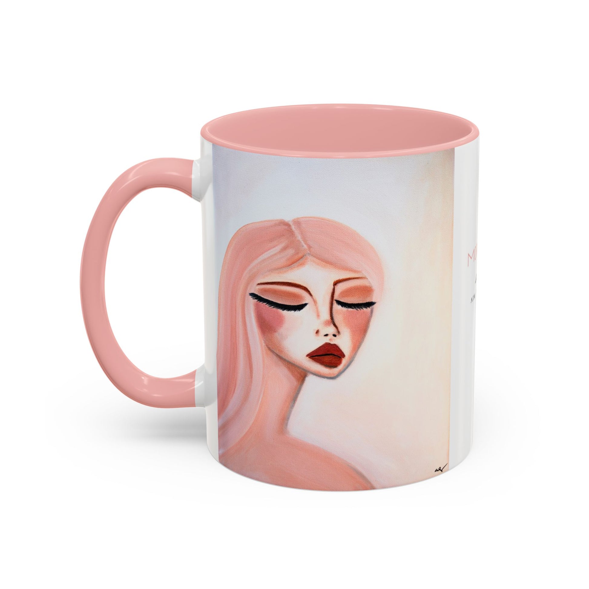 - 11oz mug with light pink interior and handle