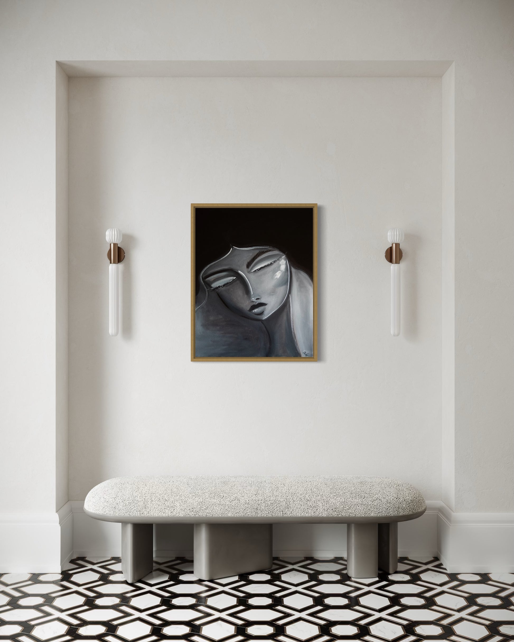 Varnished with archival gloss. The sides of this canvas have been left white and overspill, smudges, and artist marks have been left raw and exposed.