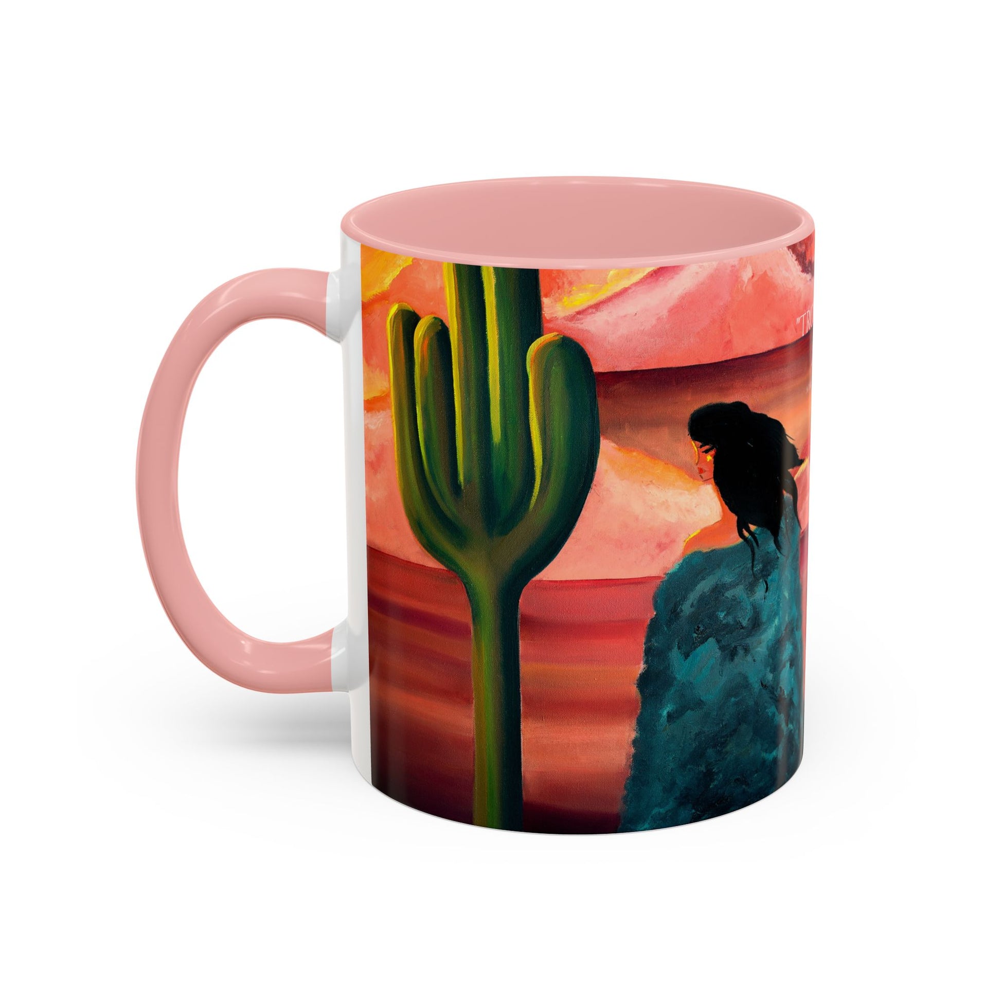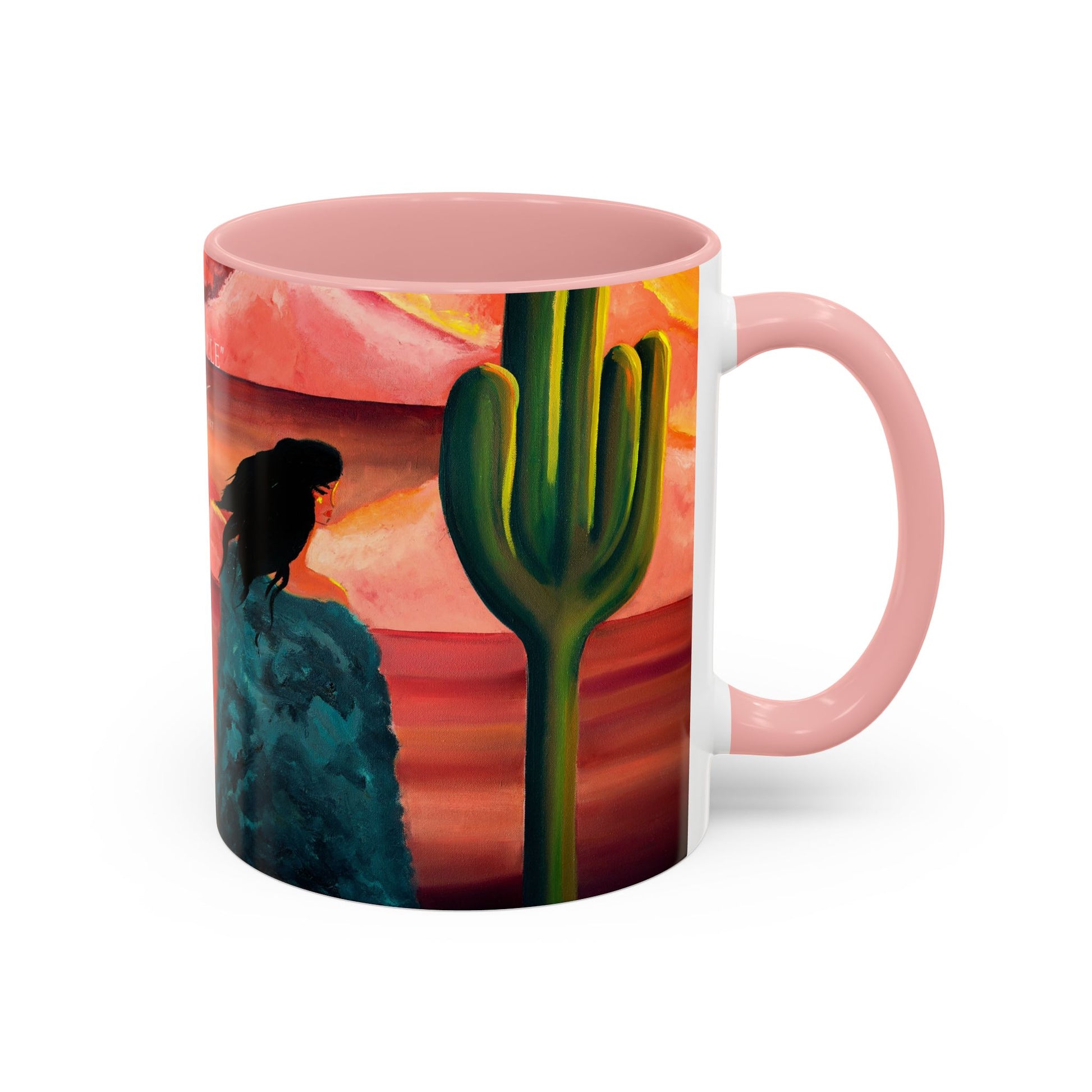This mug is perfect for the art and coffee lover in your life. Printed with my artwork "Trouvaille." Features a traveling girl with long dark hair and a surreal cactus dreamscape.